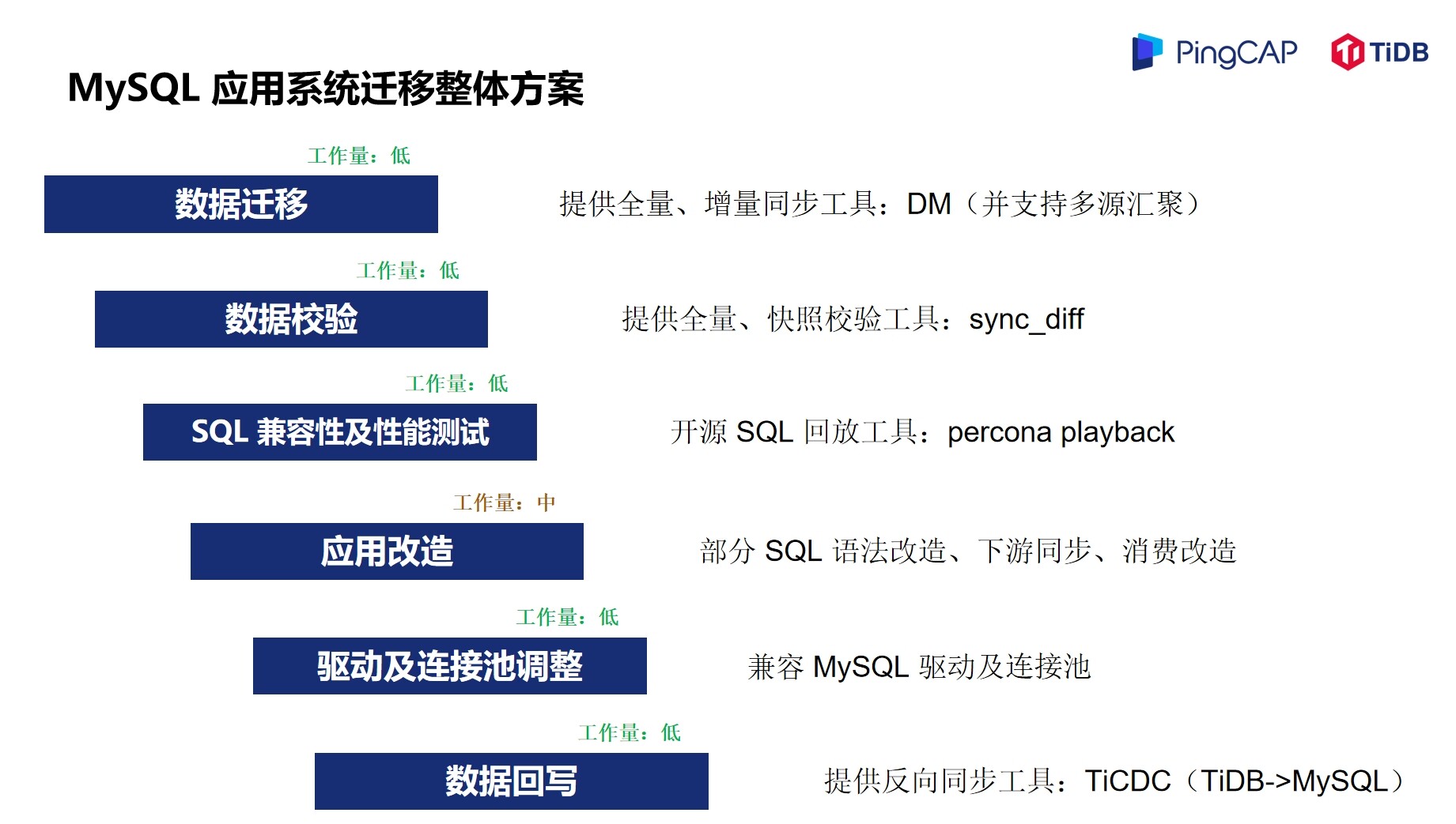 分享的最后,来自 PingCAP 的华东区解决方案架构师 董炽胜老师来分享了MySQL 5.7 EOL:数据库选型路径思考及 MySQL 稳定高效的迁移实践。