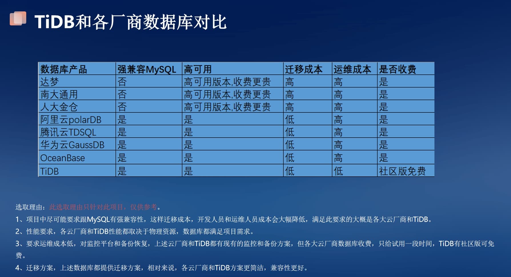 本次活动我们也邀请到了来自科大讯飞的李天亮老师分享了 TiDB 在教育行业国产化数据库选型与落实。 在信创时代,越来越多公司选择国产化数据库,本次分享将详细介绍国产化数据库的现状,及其他厂商国产化数据库的优缺点对比,根据相关教育项目业务需求,选择TiDB作为MySQL替代者的原因以及其本身的优势分析。