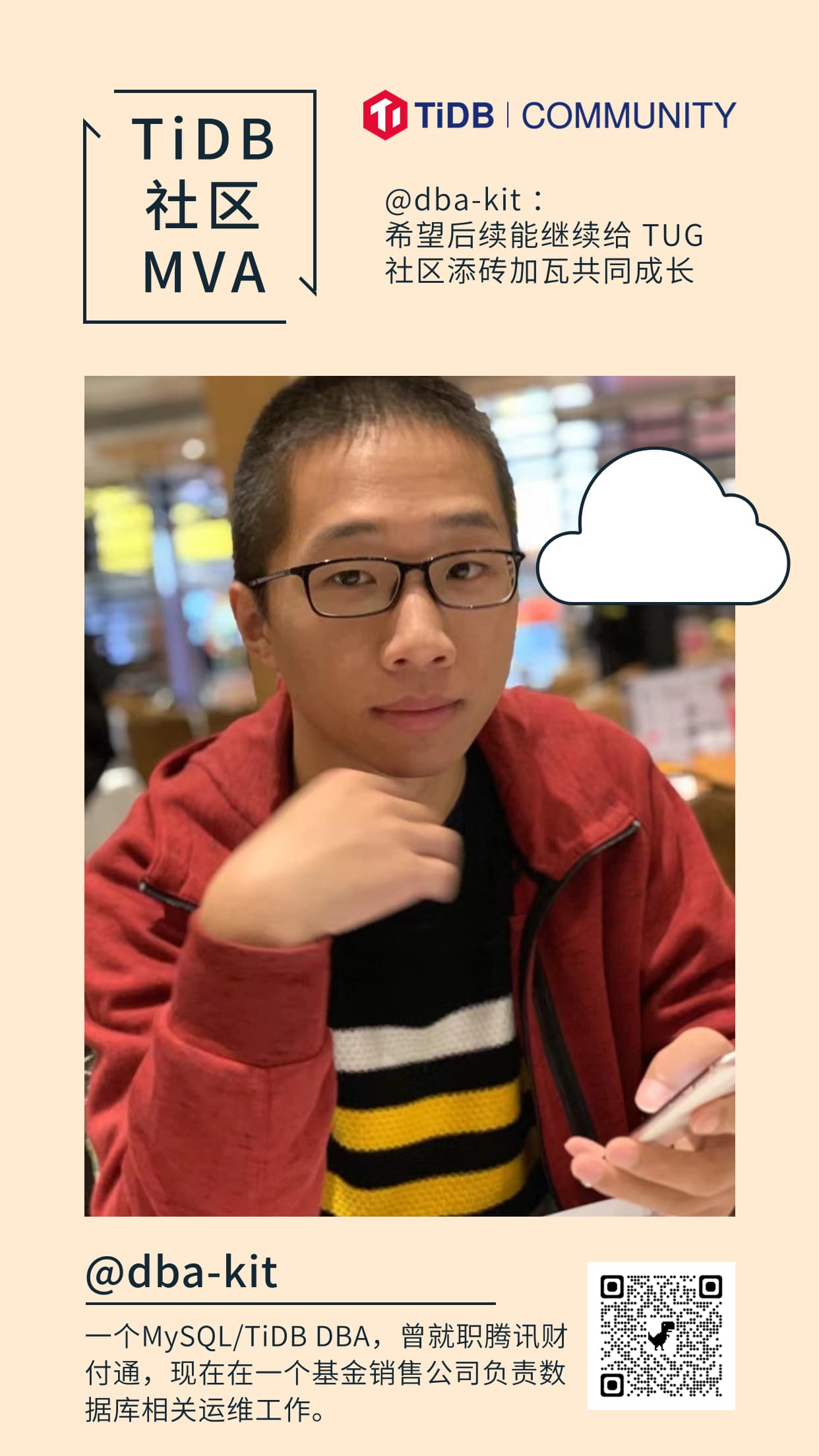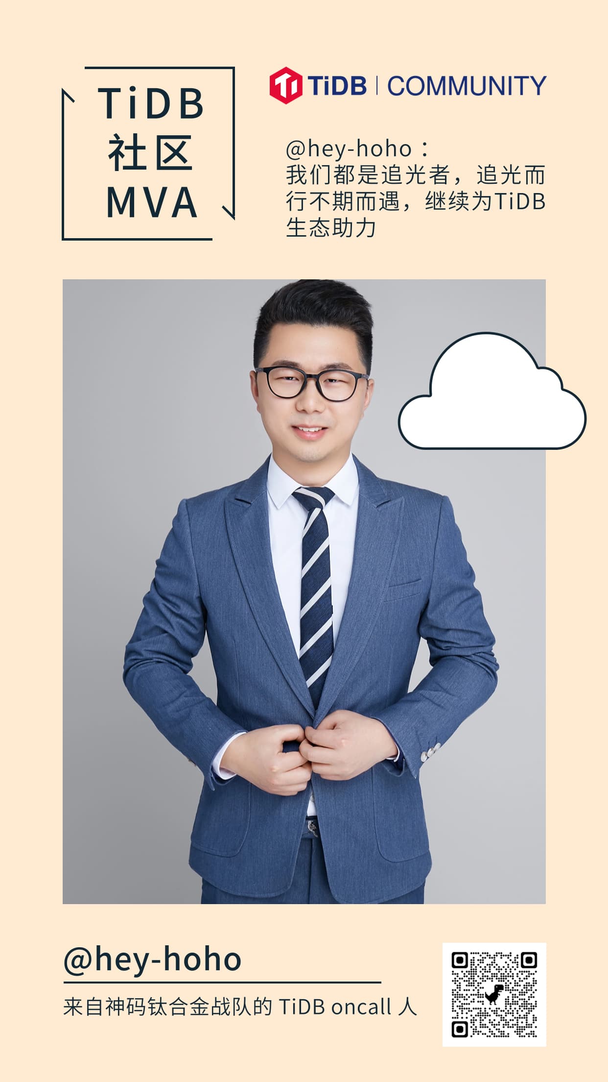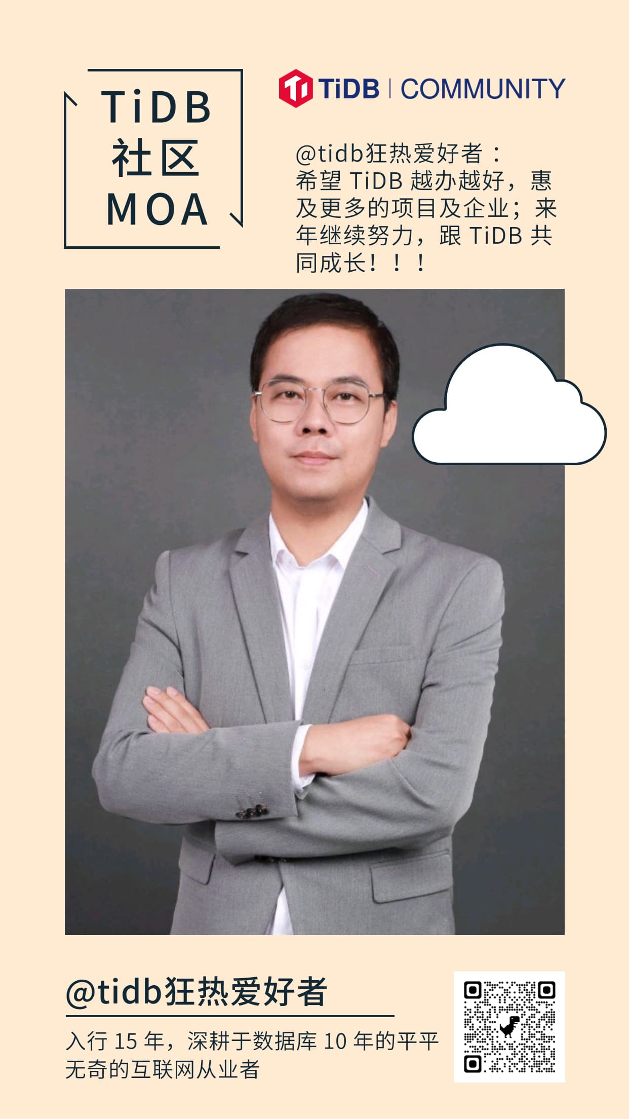 我一开始是MySQL DBA,2020年到了现在公司后开始慢慢接触了PG、TiDB等其他数据库产品,最终深深被TiDB的生态吸引。其他传统的数据库往往只提供一个数据库产品,而TiDB则提供一个完整的数据库周边运维生态,对运维人员十分友好。每次大版本升级都能带来很多诱人的特性,是实打实奔着解决我们DBA在生产中遇到的痛点的,让人忍不住想要升级使用新功能。TUG社区也是一个对技术人员很友好的社区,上面讨论的技术问题有很多热心人解答,甚至还有不少TiDB开发人员来协助解答,你遇到的问题基本都能在这里找到解决方案。希望后续能继续给TUG社区添砖加瓦共同成长,也祝愿TiDB做大做强,只有TiDB市场变大了,我们TiDB DBA才能越来越有钱途。