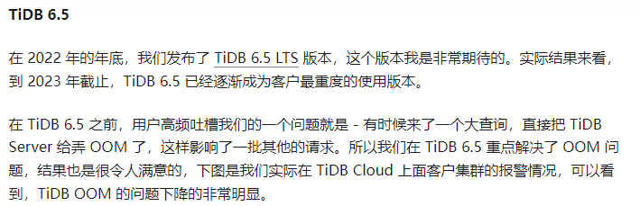 总结:TiDB v6.5 重点解决了 OOM 地问题 和提升了 DDL
