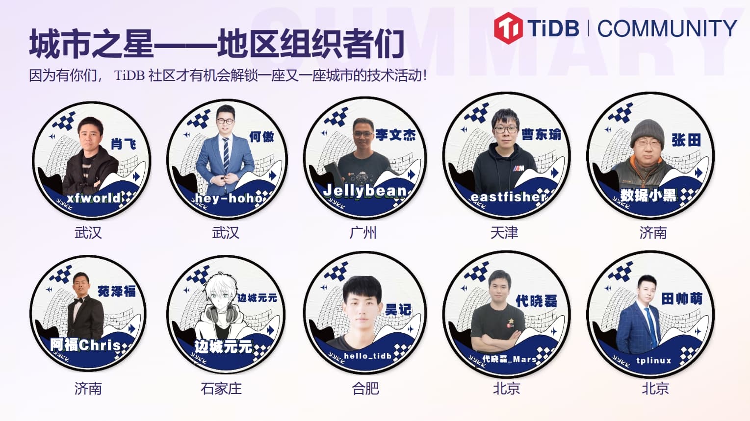 地区组织者是 TiDB 社区的中坚力量,每期地区组织活动以“连接地区技术人,分享技术实践”为核心目的,正是因为有地区组织者在各地区的支持,才有了 TiDB 社区丰富的地区交流活动!