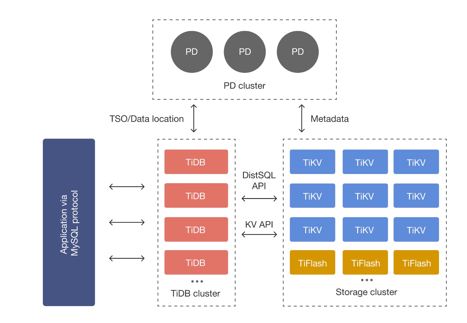 TiKV是TiDB数据库下的一个组件,TiDB拓扑结构如下: