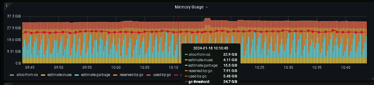 threadhold是阈值的意思,不是使用量,到这个位置GO语言会开始回收内存。