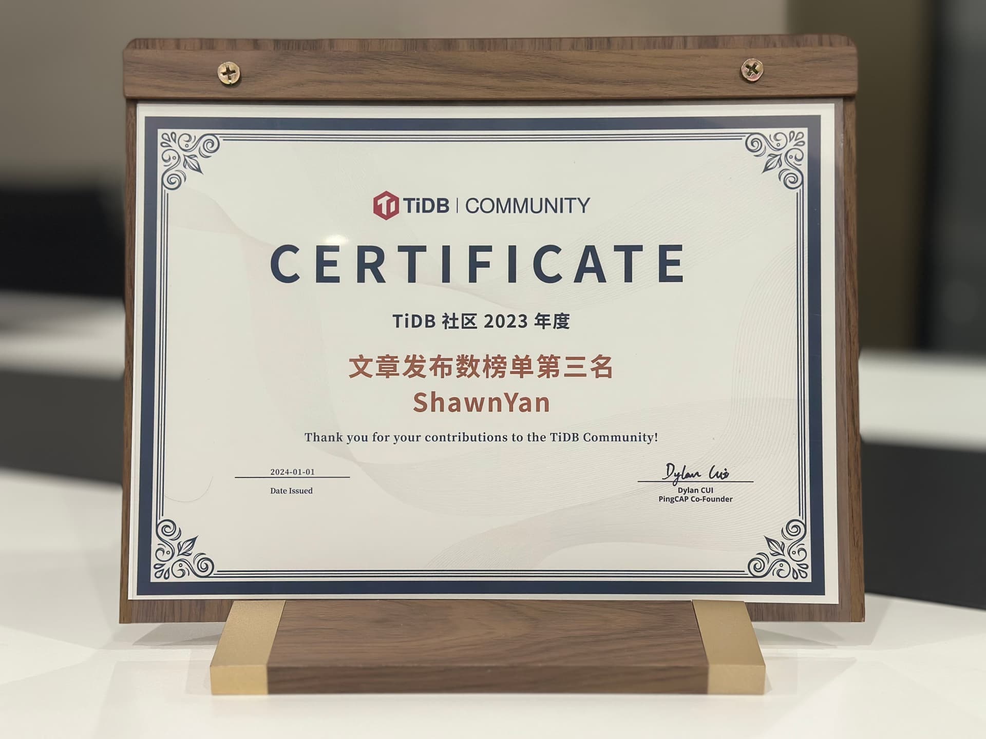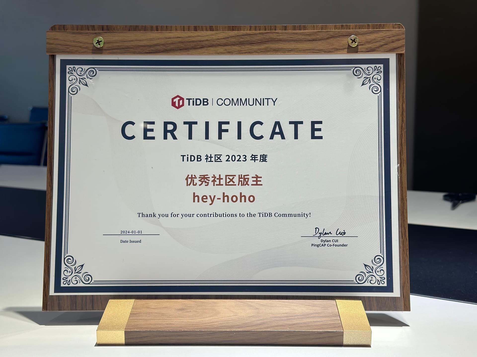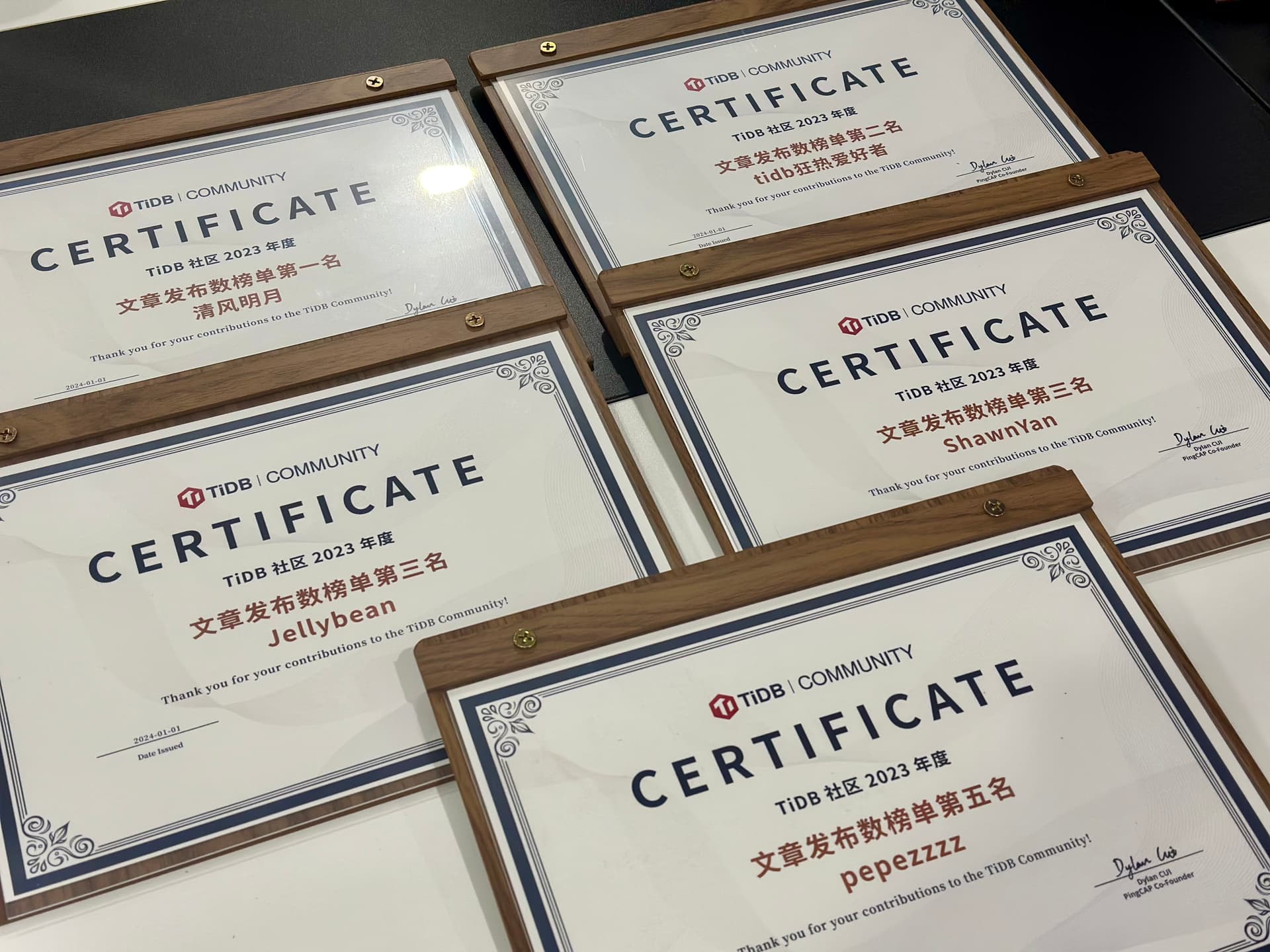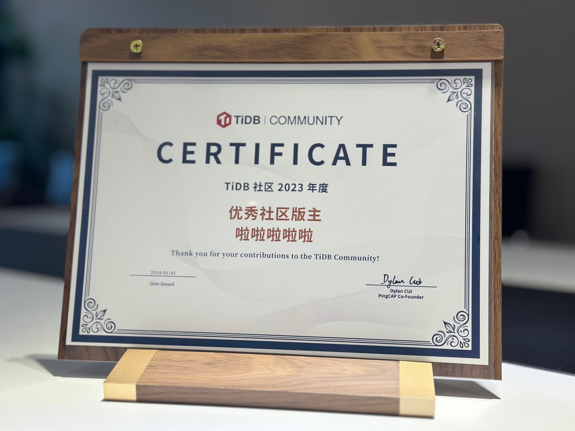 在优秀年度证书里面挖呀挖呀挖~