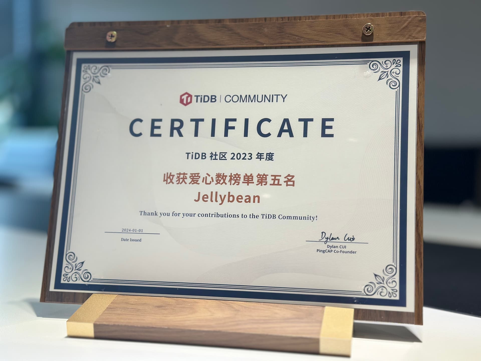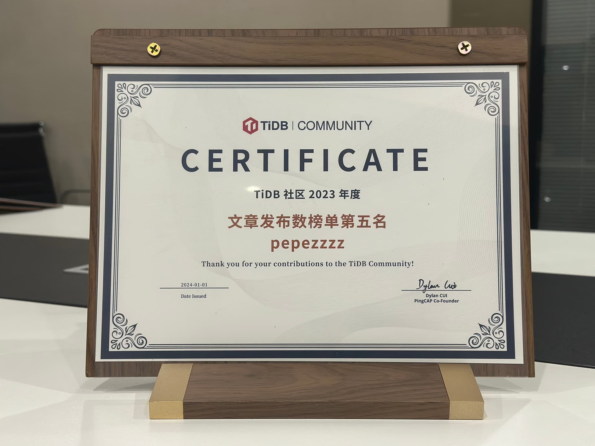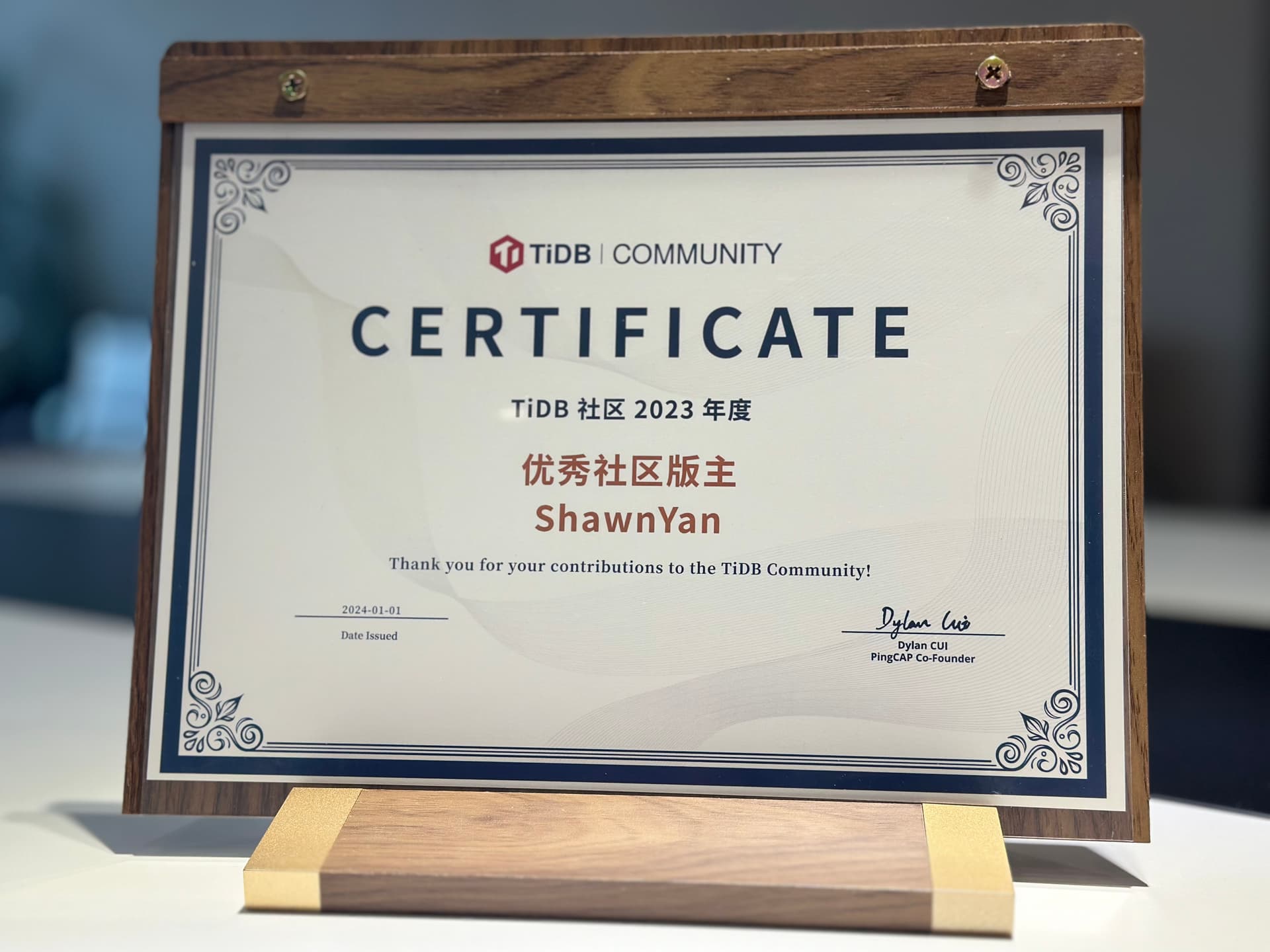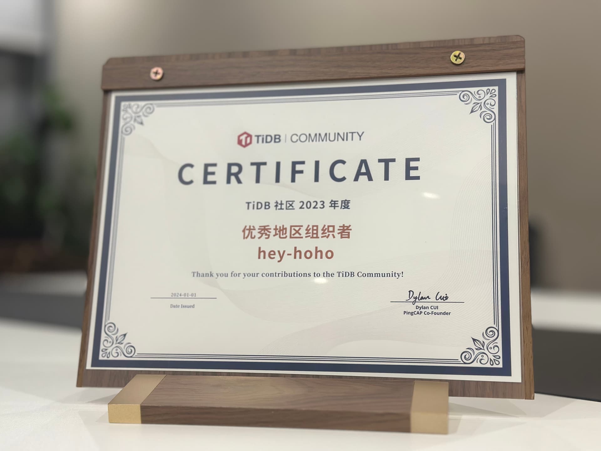 在优秀年度证书里面挖呀挖呀挖~