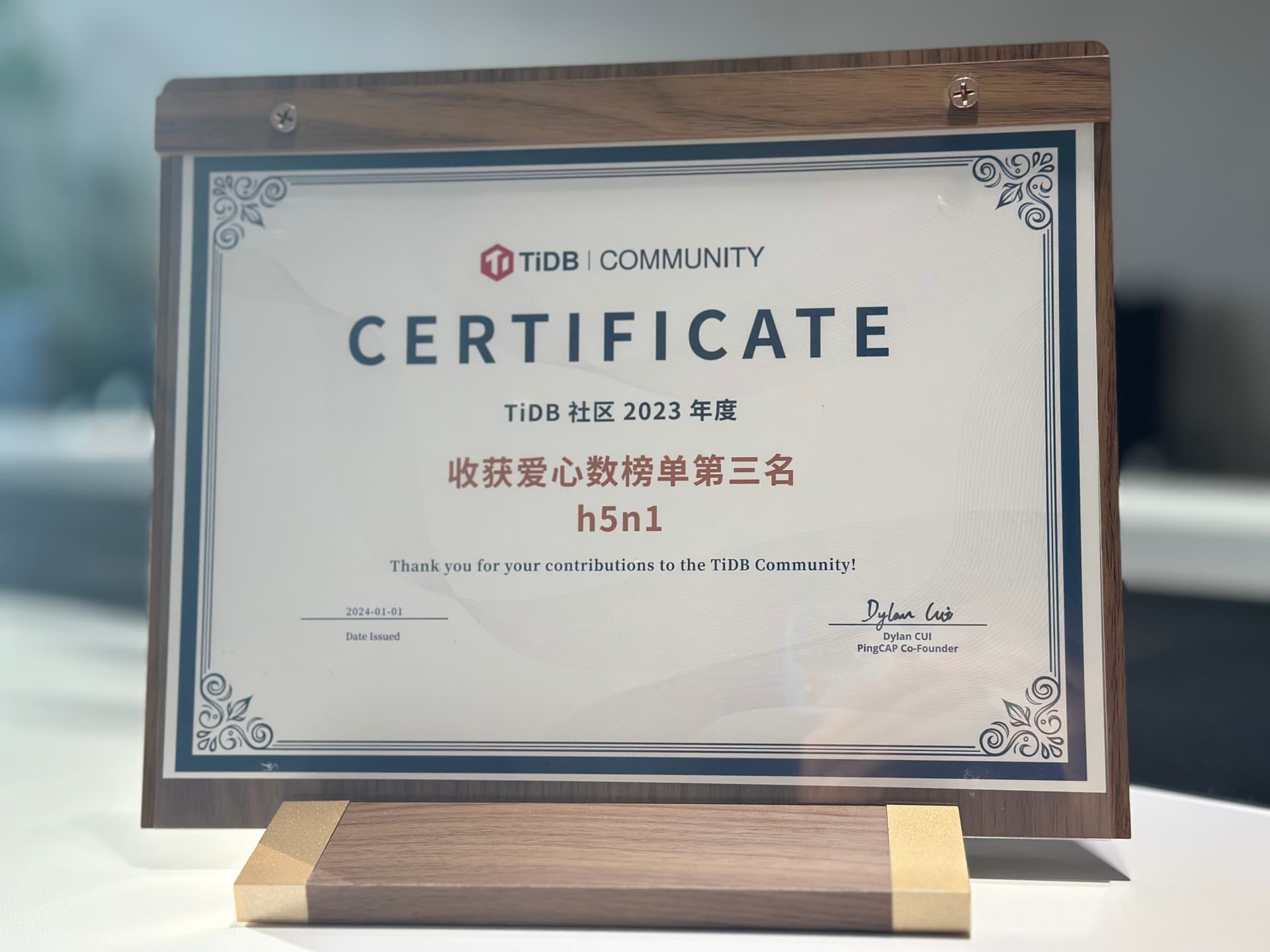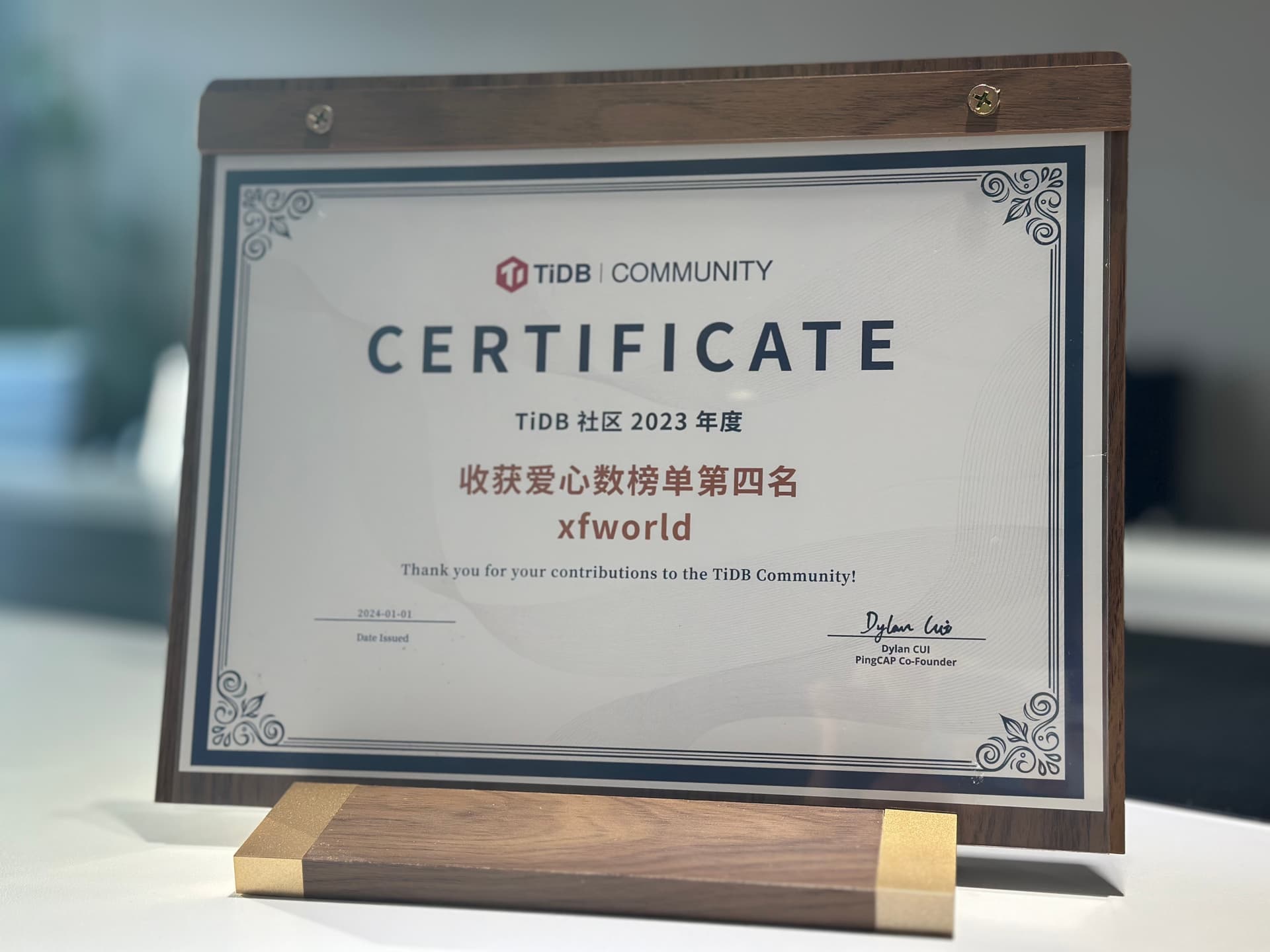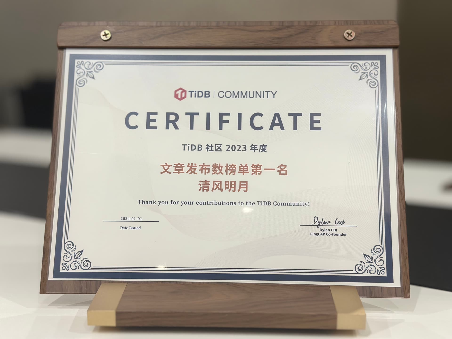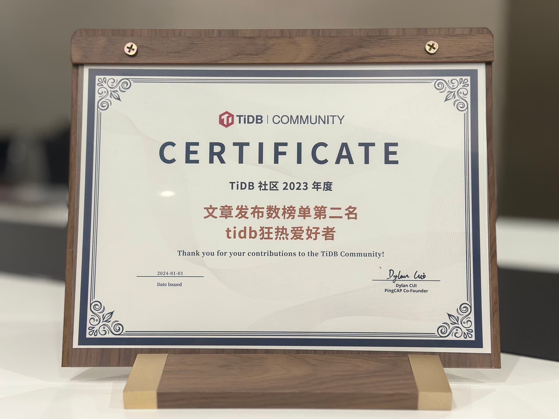 在优秀年度证书里面挖呀挖呀挖~