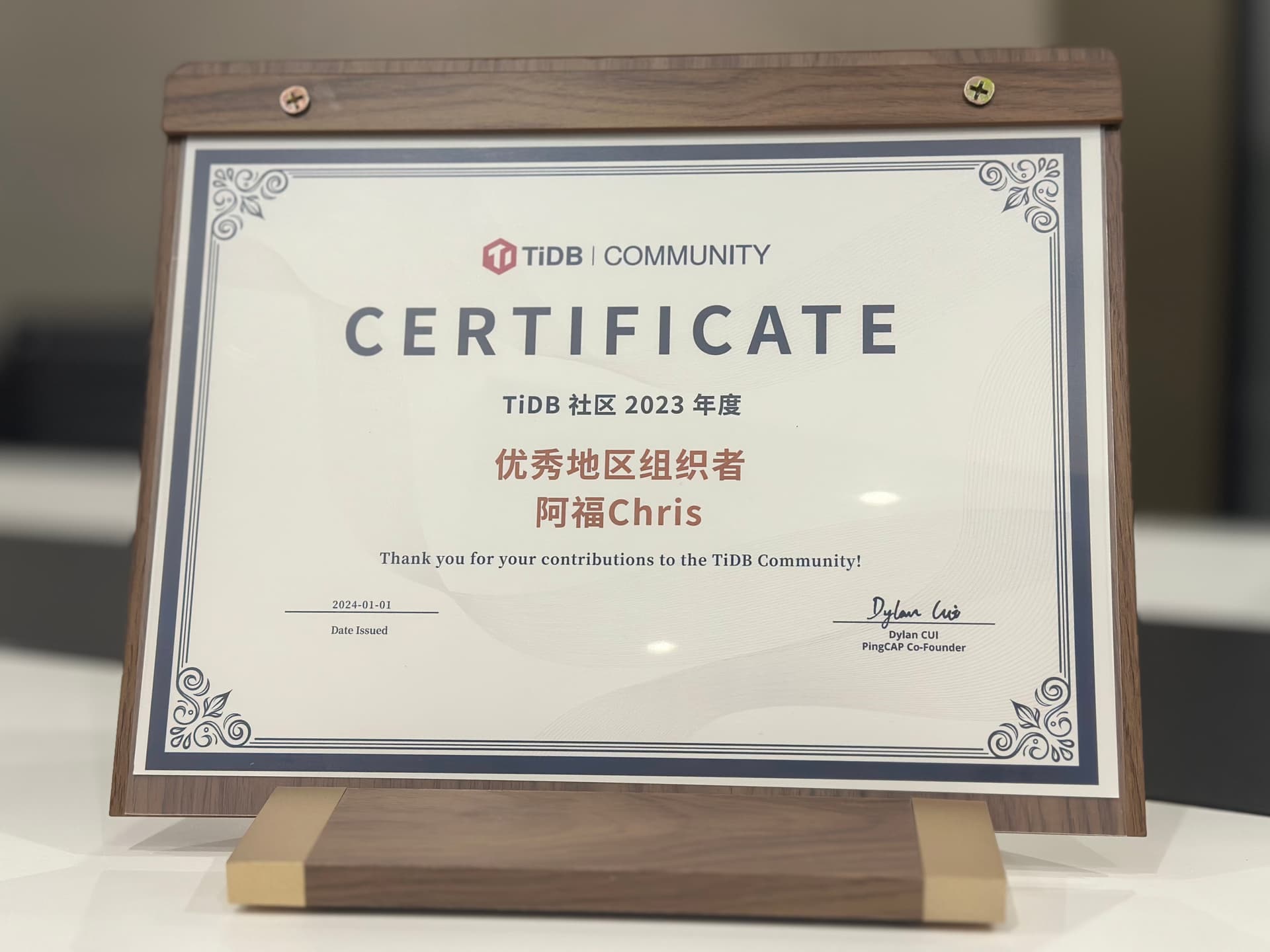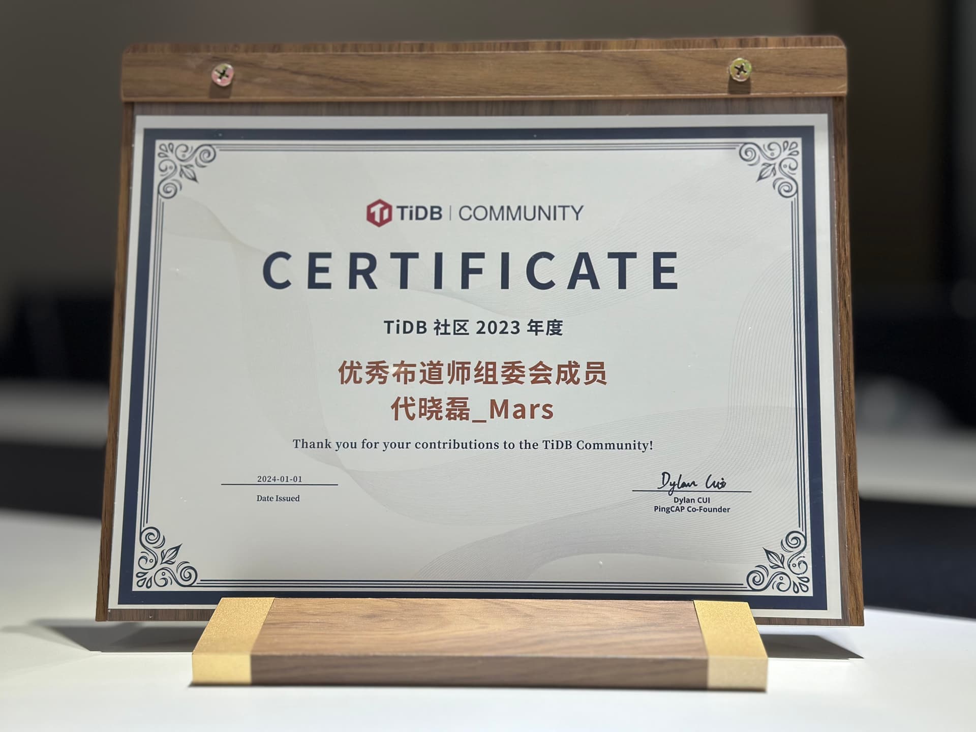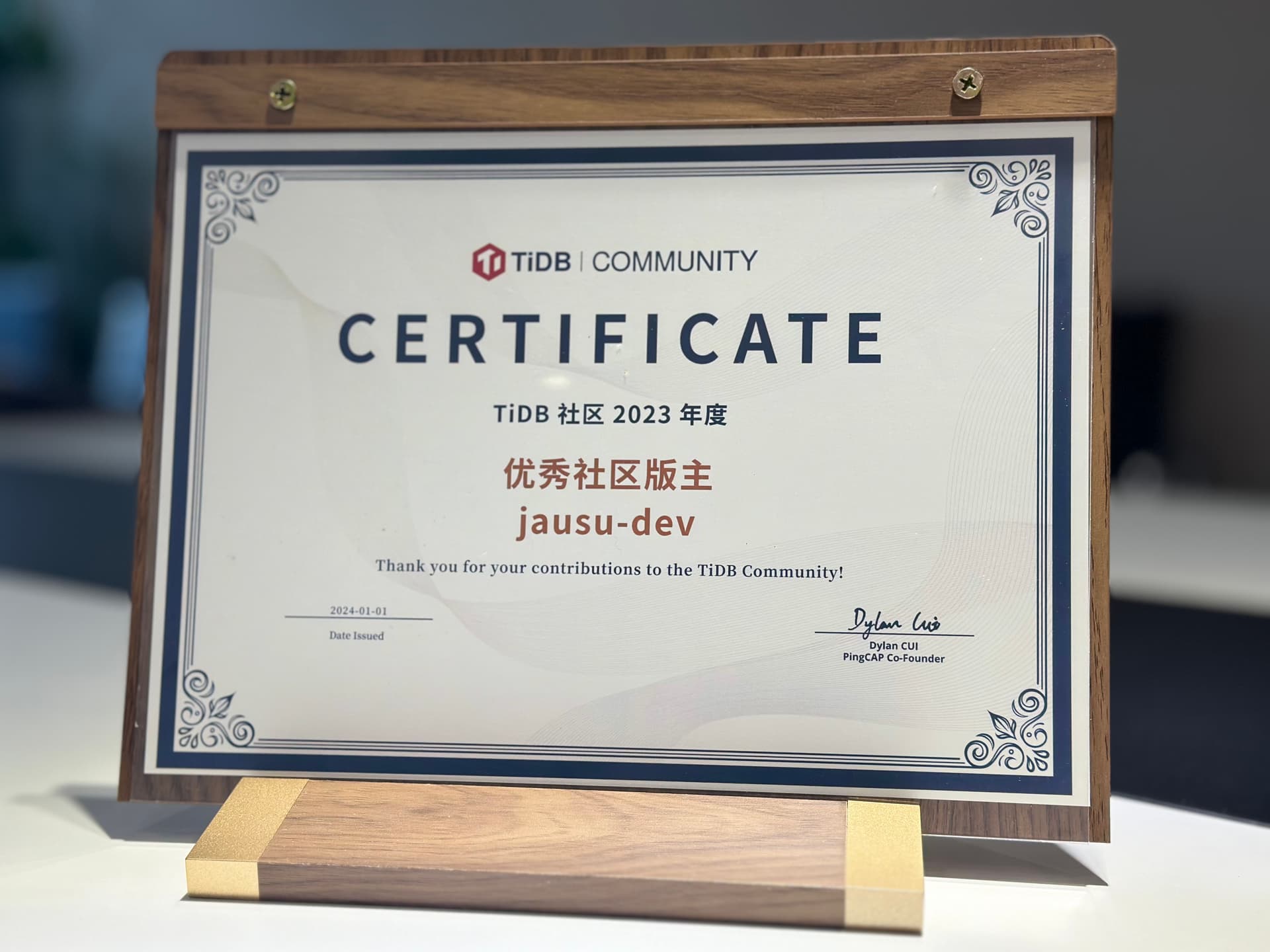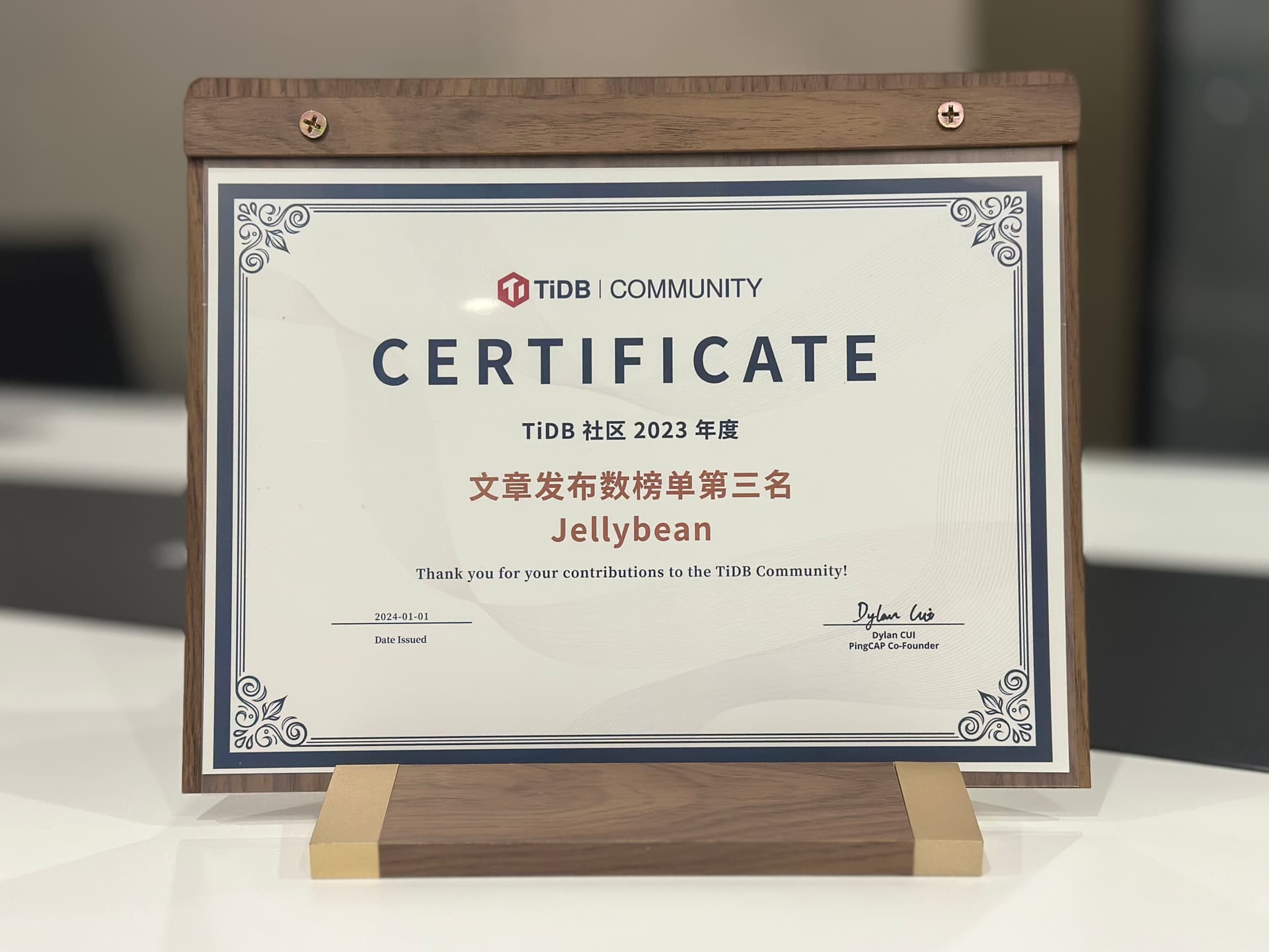 在优秀年度证书里面挖呀挖呀挖~