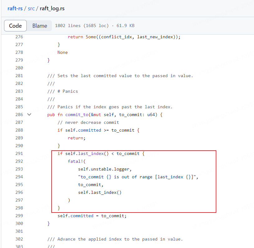 这个意思大概就是:这个节点的日志到了last_index,但是要让提交到commit,这个commit超了本地的日志。就panic了。
