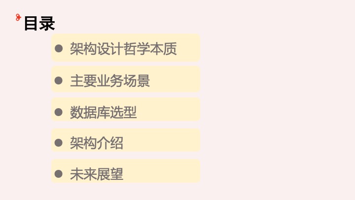 转转首席架构师孙玄老师的分享围绕架构设计哲学本质、主要业务场景、数据库选型、架构介绍、未来展望几部分展开。