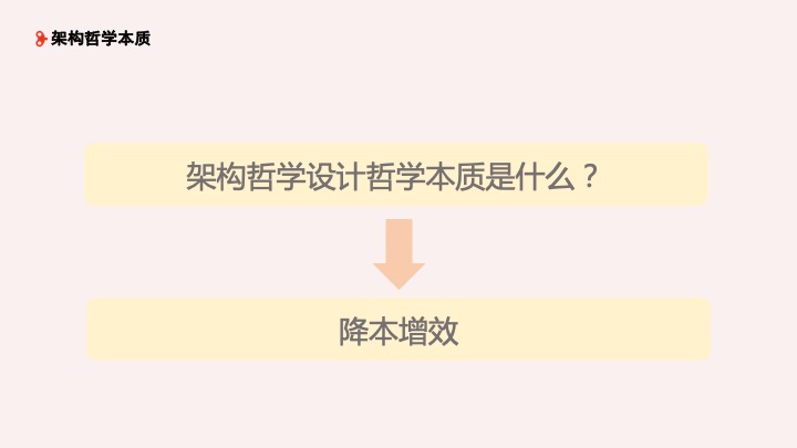 孙玄老师认为架构哲学设计的本质是降本增效,即降低业务成本,增加开发效率。