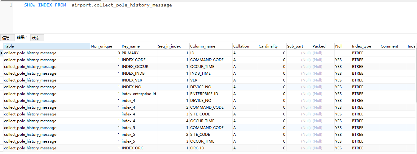 用mysql客户端连接执行show index from airport.collect…这条语句会有问题吗?