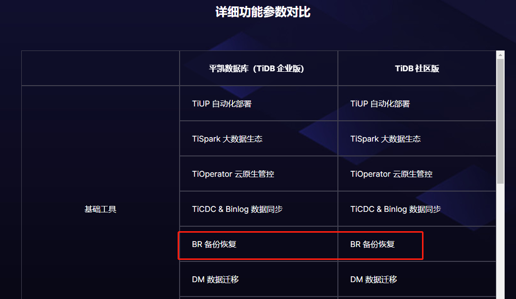 看到企业版的介绍支持存储级别的备份恢复而社区版没有。这个是和普通的br有区别么