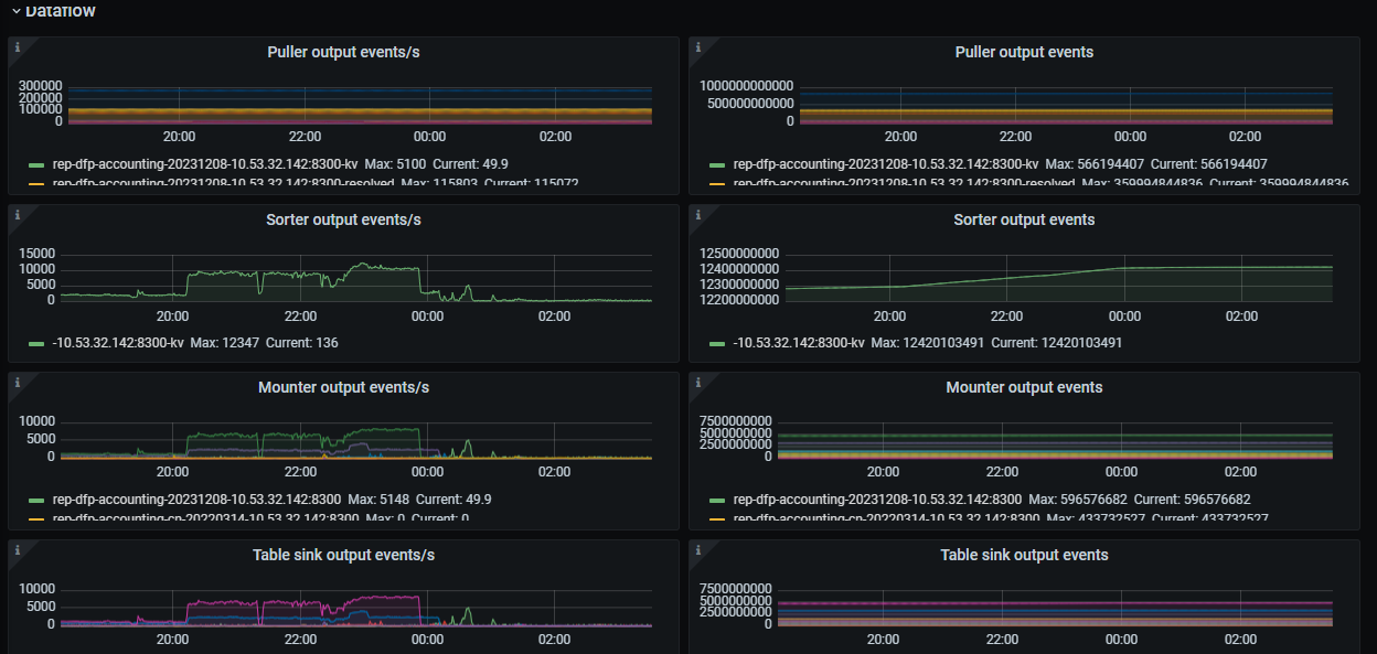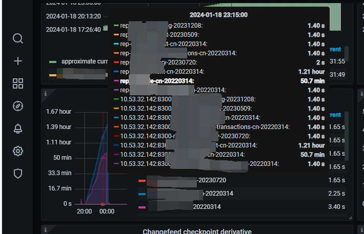 2024-01-18 20:10:00 对TiDB其中几个表进行了归档操作,归档期间cdc产生延迟,直到停止归档后cdc链路延迟消费完成后恢复