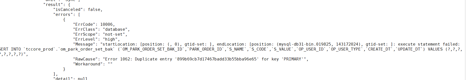 手动resume的时候,确认一下binlog位置是不是回退了,有可能是回退之后,重新同步到问题点重复触发了相同的报错现象。