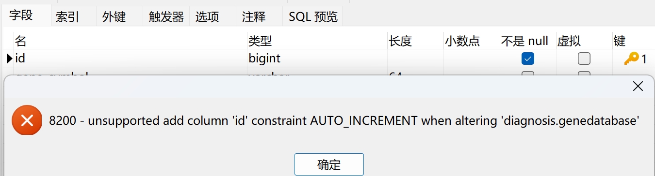 【问题】 没办法往表里面添加自增id呢
