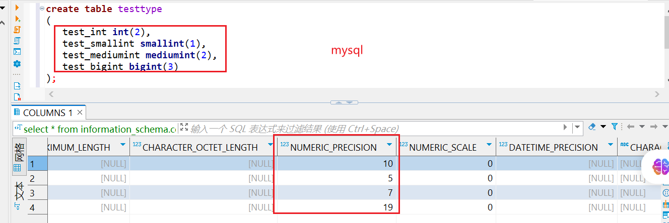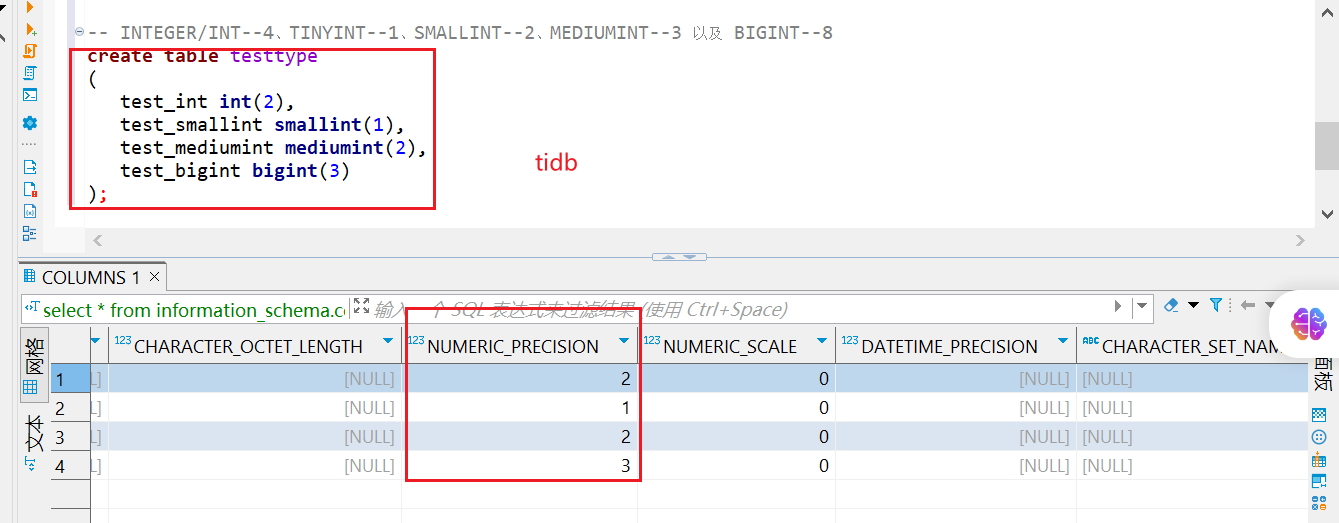 相同的建表语句系统表中information_schema.columns中精度字段NUMERIC_PRECISION值不一致,