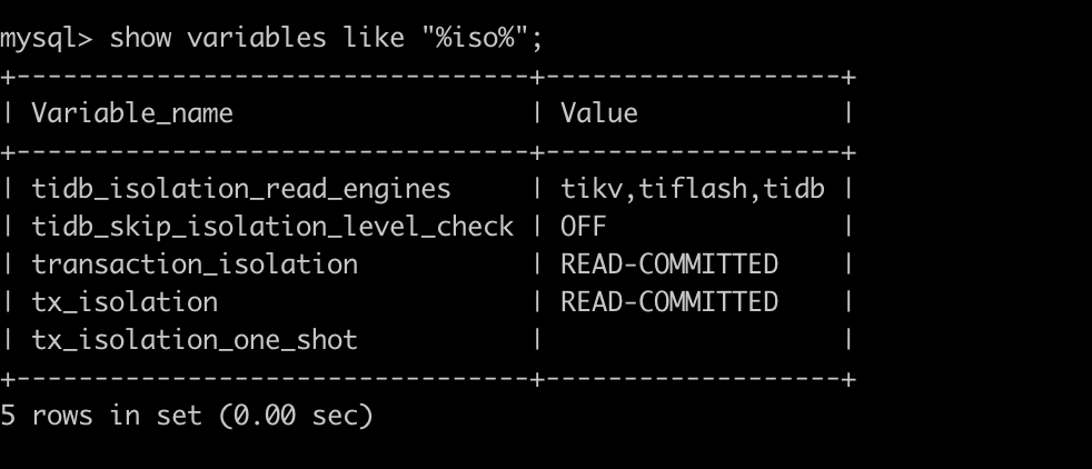 使用 Mysql 客户端对 tidb 调整事务隔离级别为 RC,