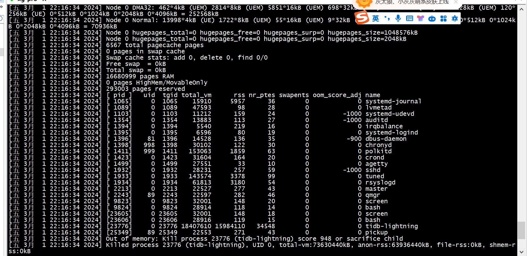 占了60多g内存的吗,lightning参数发出来看下,导入的表有啥特征吗,列很多或者很宽吗?