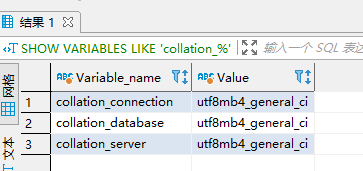 SHOW VARIABLES LIKE 'collation_%';