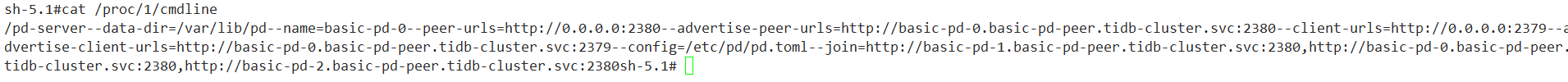 进入到pd的pod,ps看看,看看pd的启动命令。