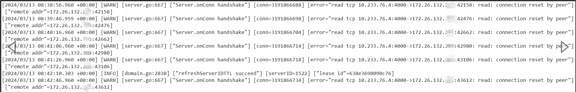 报错 connection reset by peer 说明这个连接是没被正常关闭的,这时 tidb 尝试正常从 client 读请求的时候发现连接已经被对方关了。