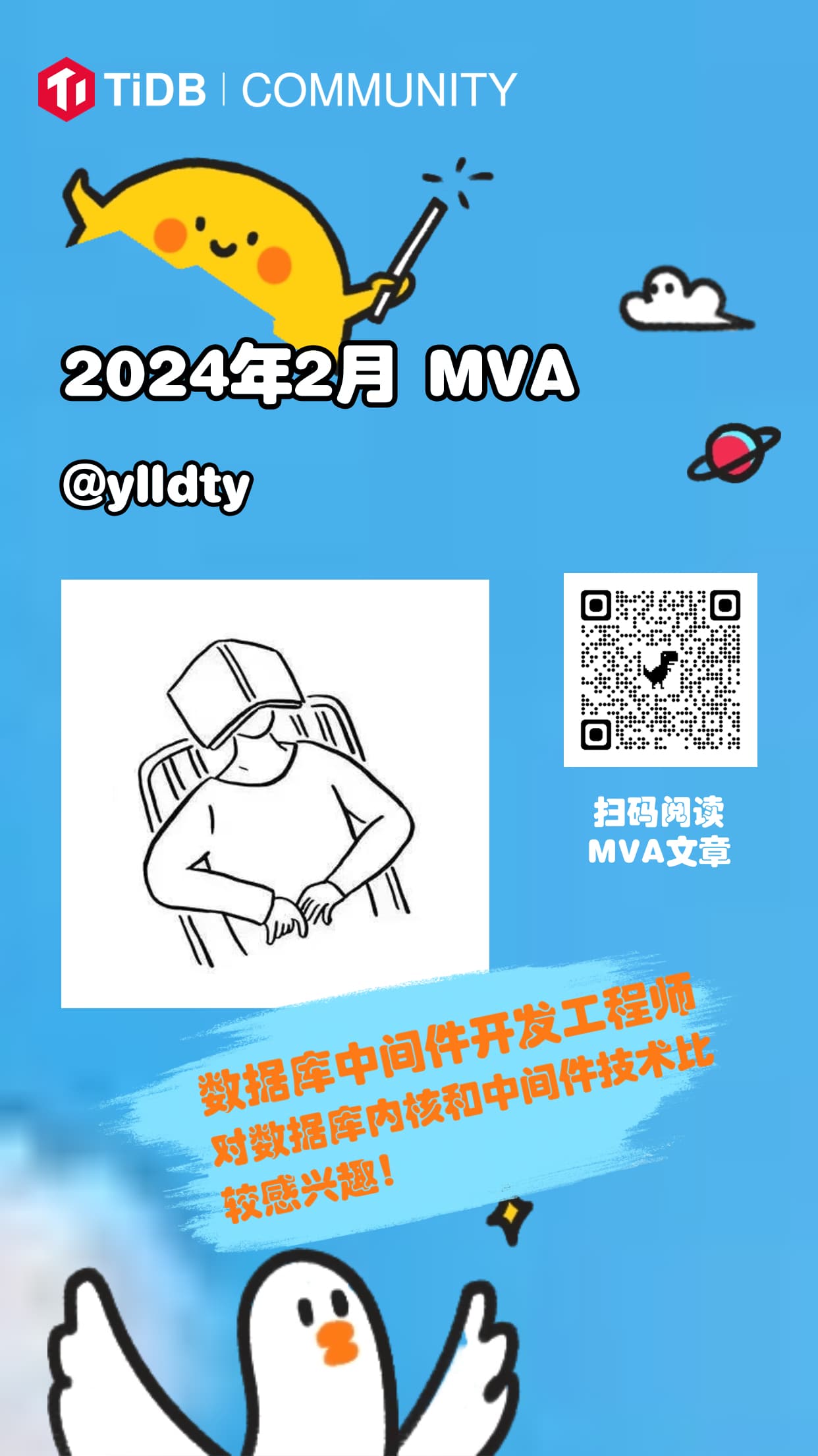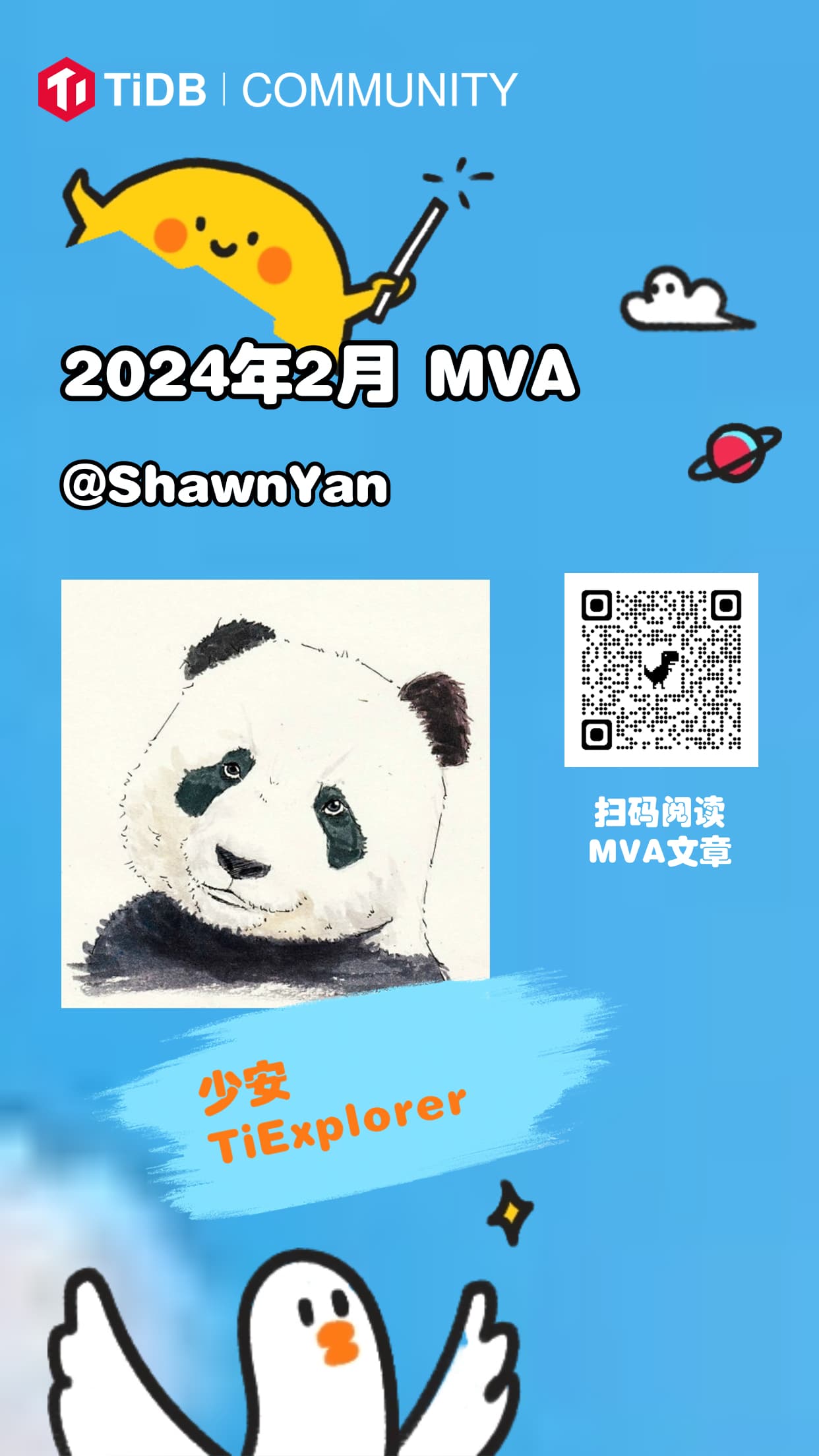 接下来是 2024 年 2月份 的 MOA&MVA 揭晓时刻啦!恭喜以下几位老师!@数据源的TiDB学习之路 @ylldty @ShawnYan @Raymond @Aunt-Shirly