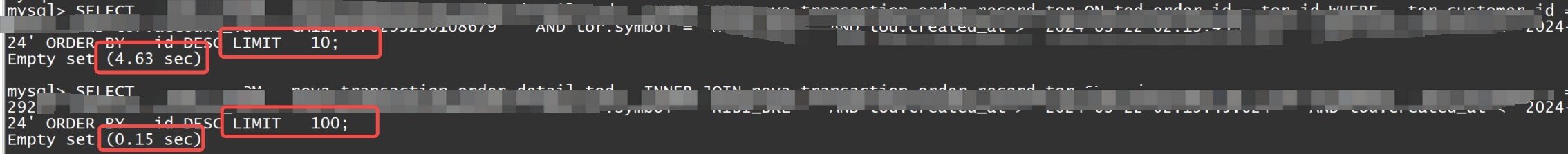 一样的sql,limit 100很快,limit10就慢。执行计划就不一样了