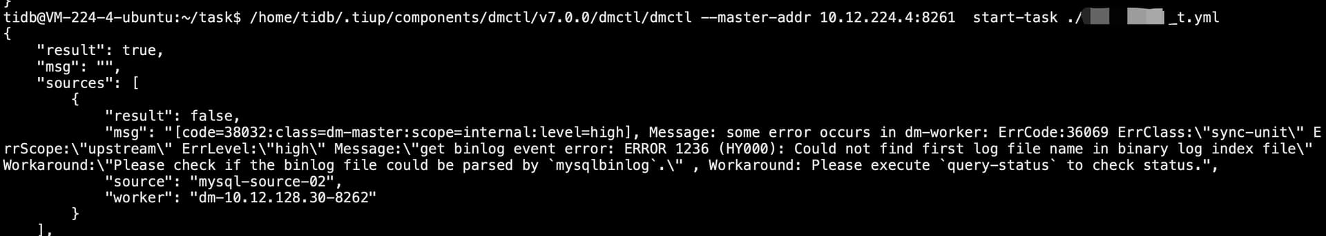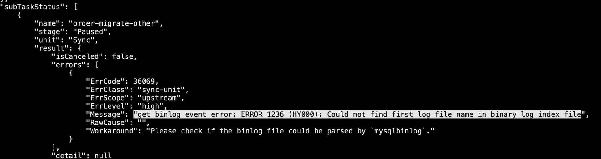 “Workaround”: “Please check if the binlog file could be parsed by mysqlbinlog.”