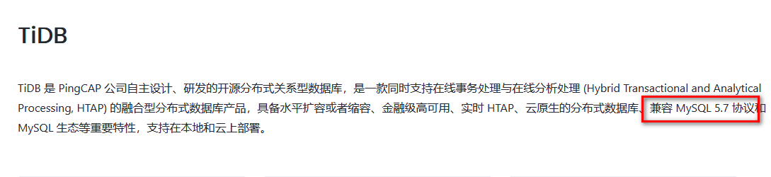 首页的内容是摘自 TiDB 简介 文档里的,目前简介文档里已经去掉了 MySQL 具体的版本信息 (see More MySQL 8.x compatibility updates by dveeden · Pull Request #16270 · pingcap/docs · GitHub ,因为 5.7 和 8.0 都兼容),首页我们也来修改下