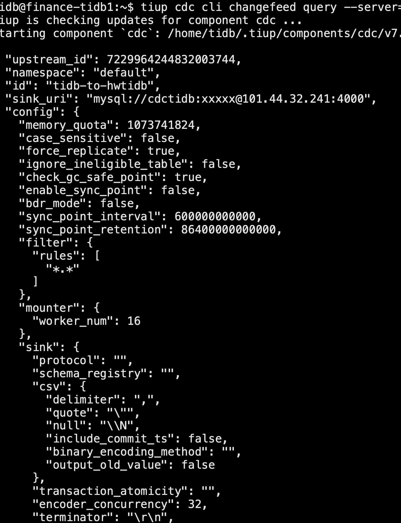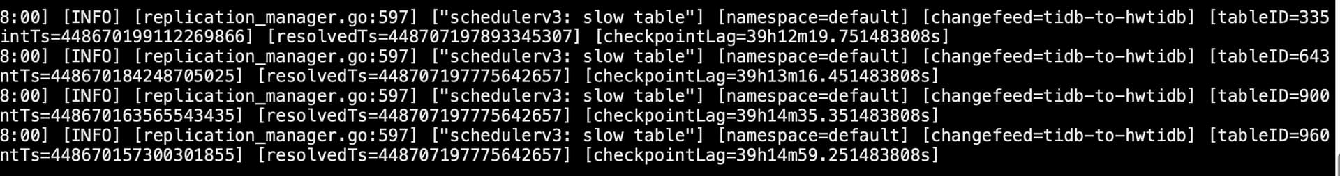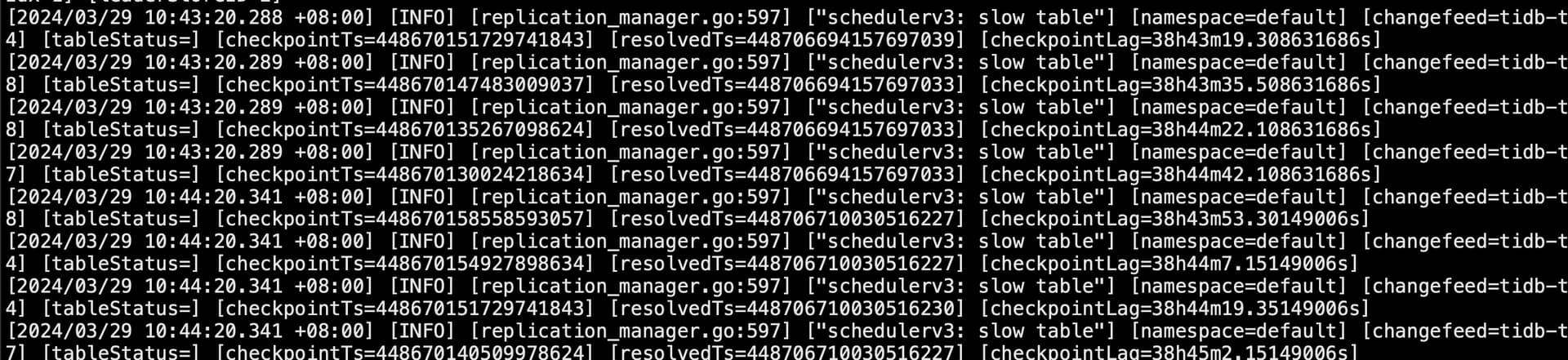 源tidb 使用tiup br 全量备份,每个节点约1.1T 数据。然后在目标(新)tidb 恢复数据,恢复时候使用cdc 实现目标tidb 从源tidb同步数据。当前恢复后的tidb与源tidb之间存在约40个小时的落后。启动cdc changefeed 后,查看各项state 是normal 但是checkpoint_tso 与heckpoint_time 不变,未发现表数据增长
