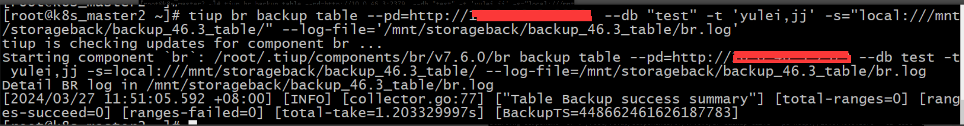tiup br backup table 可以一次性备份多张表吗?