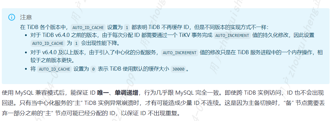 AUTO_ID_CACHE=1 兼容mysql 自增,id存在巨大的间隙。