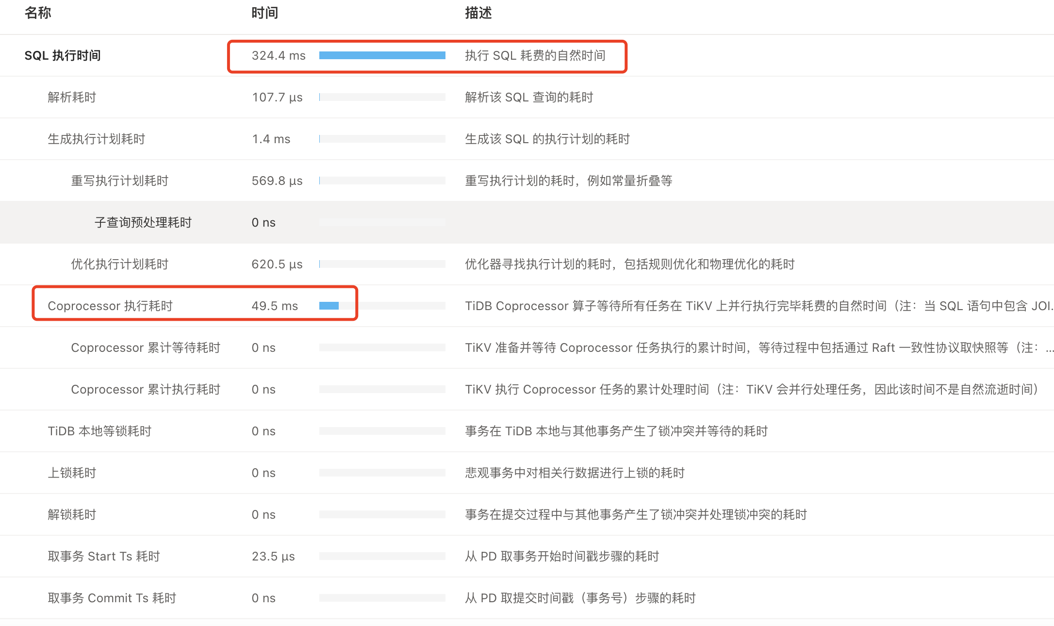 【整体执行时间】324ms,除了【Coprocessor 执行耗时】50多ms,没有其他明显耗时,这种一般都是耗时在什么地方?