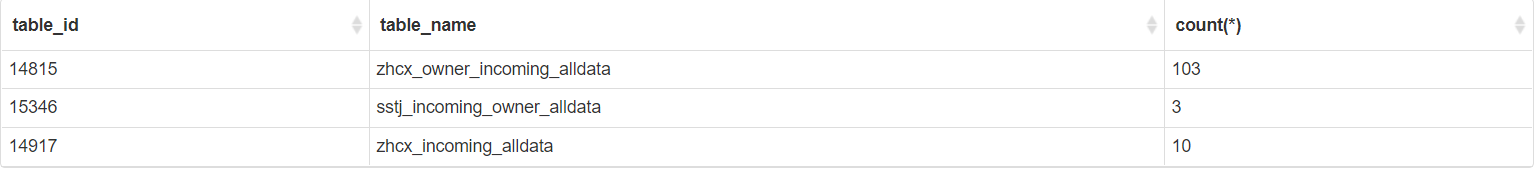 根据抓取tiflash的日志,获取到当时报错的region_id,然后,再进行查询分组得到,主要集中在这3张加载到tiflash中的分区表: