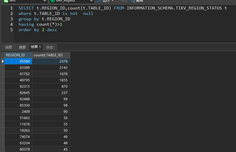 通过查询语句我们可以看到一个region可能包括多个表的数据