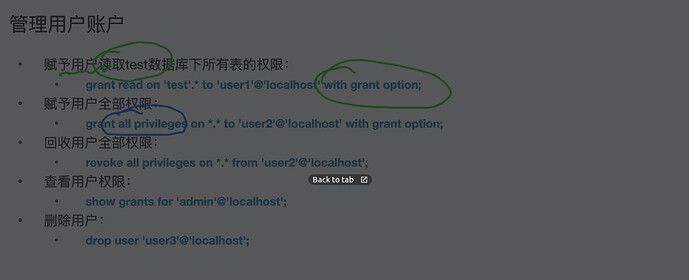 是的,这边课件写错了,应该是:grant select on ‘test’.* to ‘user1’@‘localhost’ with grant option;谢谢指出,视频后面已经修改了。