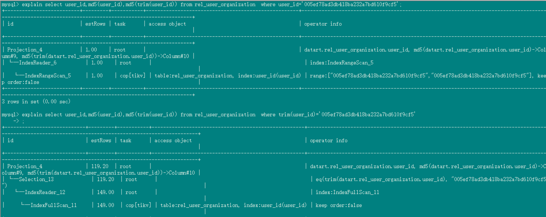 mysql> select distinct length(org_id) from rel_user_organization;