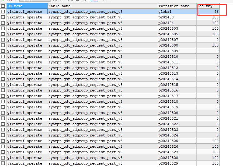 在发现一个,modify是0的分区,健康度可以统计到100,modify不是0 的,健康度就显示0