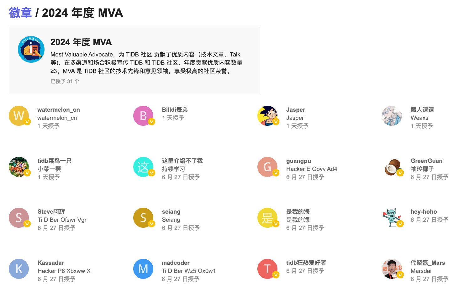 - TiDB 社区 MVA 定制款奖牌