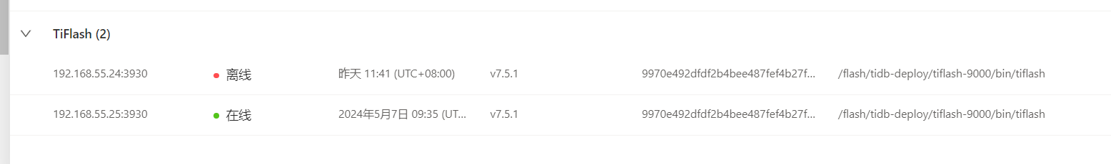 接到预警提醒TiFlash出现下线情况,经检查 该服务器 tiflash进程在运行中 ,通过telnet操作可以进入。端口可用。