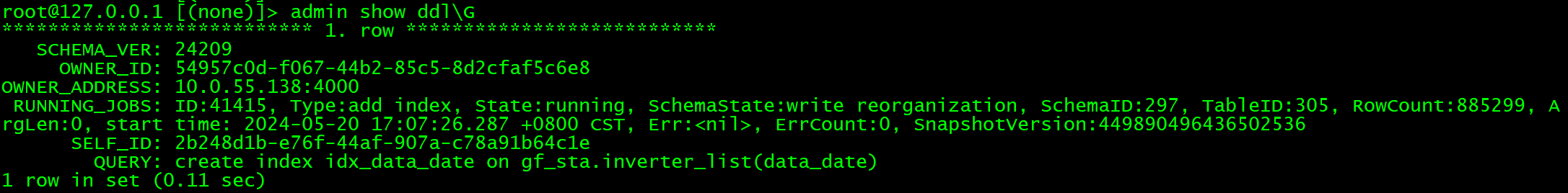 ROW_COUNT 在变化就行,或者升级到支持参数的的版本 tidb_ddl_enable_fast_reorg