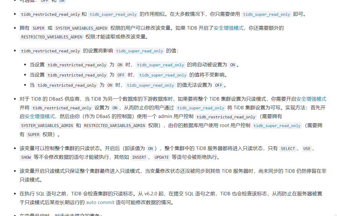 MySQL 可以在init_connect里面设置 SET TRANSACTION READ ONLY=1 来让当前会话只读,但 TiDB 没有实现这个系统变量,还有其他方案吗? 新增一个专用的 全局读账户可以,但如果我们想的无论什么账户密码连上去,都默认只读呢?