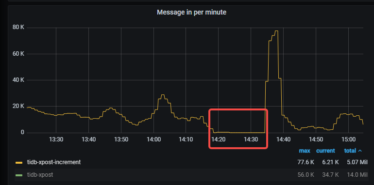 升级集群版本v5.4.3 → v7.1.5,升级过程中cdc数据中断15分钟。