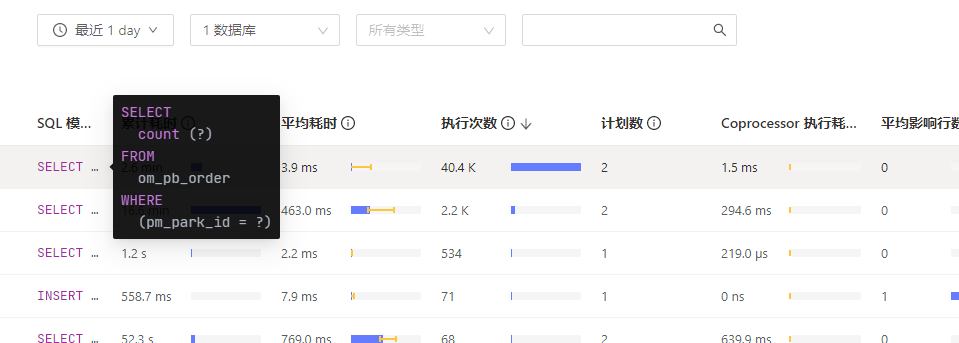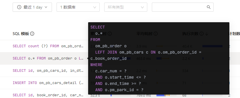 Dashboard → SQL语句分析 → 累计耗时/执行次数 倒序排列