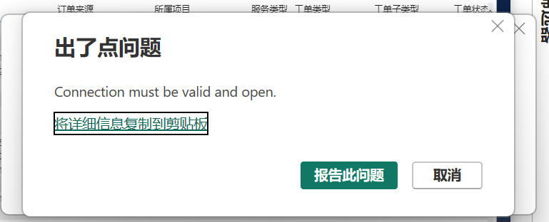 在 Microsoft.Mashup.Client.UI.Shared.WindowManager.ShowModal[T](T dialog, Func1 showModalFunction) 在 Microsoft.PowerBI.Client.Windows.FloatingDialog.KoLoadToReportDialog.TryShowDialog(Report report, IExceptionHandler exceptionHandler, IPowerBIWindowService windowService, IPowerBIQueryUIService queryServices, IDesktopModelingHost modelingHost, LocalizedString title, LoadToModelContext loadToModelContext) 在 Microsoft.PowerBI.Client.Windows.FloatingDialog.KoLoadToReportDialog.<>c__DisplayClass16_0.<TryShowDialogForQueries>b__0() 在 Microsoft.PowerBI.Client.Windows.Report.<>c__DisplayClass68_01.b__0()