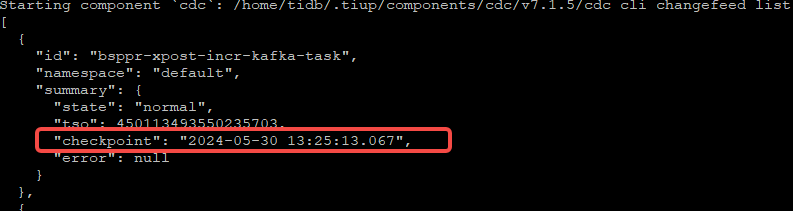 tiup cdc cli changefeed create -c xxxxxx --server=http://192.168.241.71:8300 --sink-uri=“kafka://192.168.241.64:9092,192.168.241.65:9092,192.168.241.66:9092/tidb-xpost-incr?protocol=canal-json&kafka-version=1.1.1&partition-num=4&max-message-bytes=67108864&replication-factor=2” --config=./xxxxxx.toml