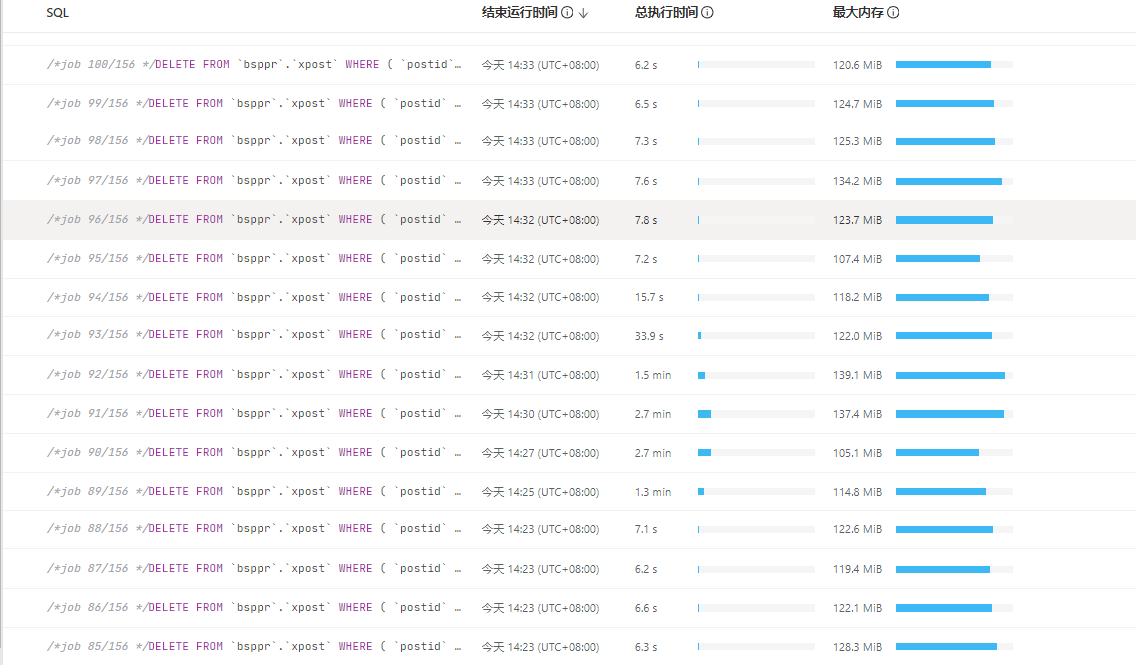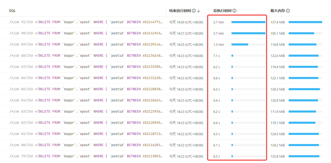 batch ddl进行历史数据清理,通过dashboard看到不同job执行时间差距巨大,想请教下这个可能原因有哪些?原因查找及如何优化呢