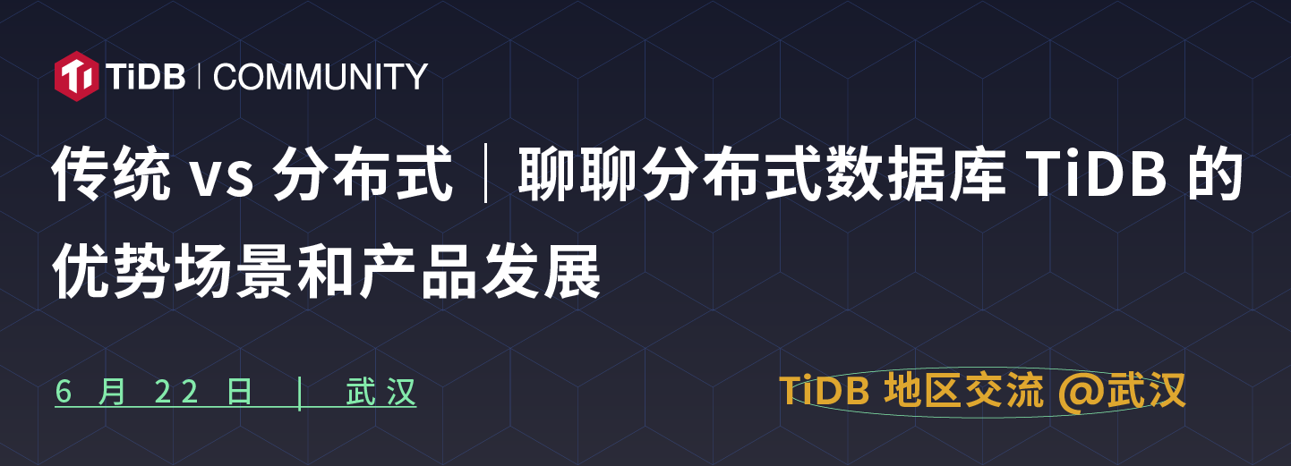 - 武汉社区面对面 - TiDB 社区时隔 2 年再次走进武汉,我们将为武汉地区的小伙伴们带来面对面的交流机会,了解 TiDB 从这里开始!