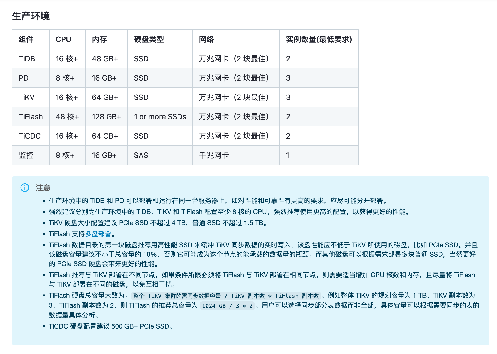 可以减少不必要的烦恼:https://docs.pingcap.com/zh/tidb/stable/hardware-and-software-requirements