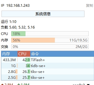 32G也不大,如果你仅仅是测试 tikv砍掉3个, 不考虑性能没用负载均衡 tidb 砍一个, 还要设置tikv的capacity 控制内存